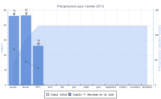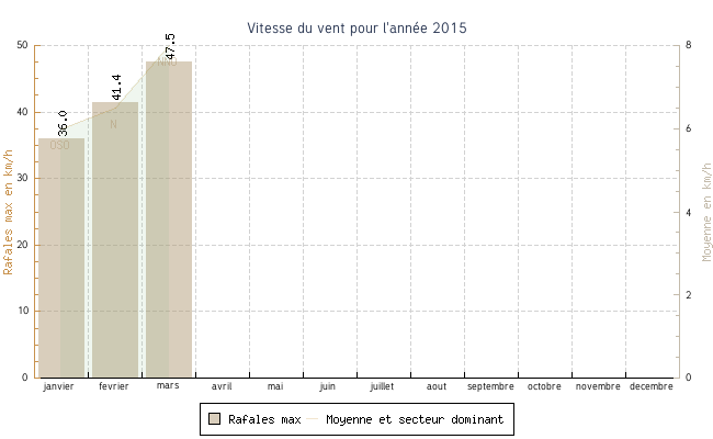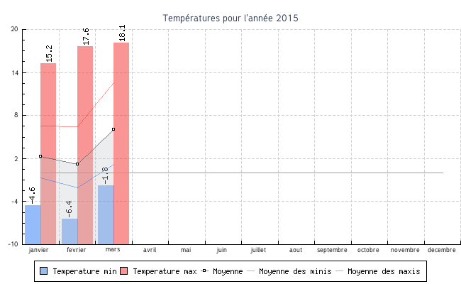 | janvier | -4.6 °C | -0.7 °C | 15.2 °C | 6.5 °C | 2.3 °C | 6.0 km/h | 36.0 km/h | OSO |